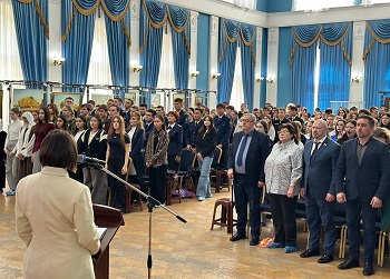 Затем студенты колледжа посетили патриотический форум в Краеведческом музее, где участников поприветствовали первый заместитель председателя Комитета по социальной политике Думы Астраханской области Денис Харитонов, заместитель председателя городской думы Александр Календр и председатель Общественной палаты Астраханской области Светлана Калашникова.