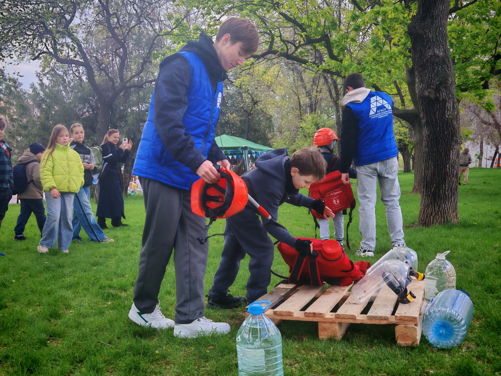 25 апреля 2026 г. первокурсники специальности «Пожарная безопасность» АГАСУ, являющиеся членами добровольного студенческого пожарно-спасательного отряда «Огнеборец», под руководством доцента кафедры пожарной безопасности и водопользования Максима Бодни организовали мастер-класс по тушению ландшафтных пожаров для юных участников городского экофестиваля «Молодые. Зеленые».